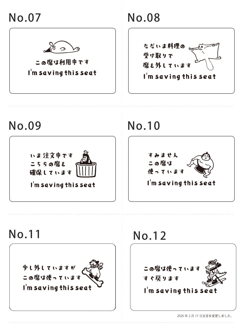 [関連キーワード]席取りプレート 離席プレート 席取りカード 席 札 プレート 席札 ワンオペ 席確保 席予約 予約席 スポーツ観戦 スタジアム サッカー 野球 ラグビー バレーボール サインプレート グッズ ノベルティ 卒業 おひとり様 お一人様 行動 入学 親御さんが喜ぶ 品の良いスマートなグッズ 席取り合戦 席取り 何を置く 可愛い イラストプレート パンダ ゴリラ リザーブプレート 多言語 外国人 観光客 インバウンド 赤ちゃん 一人でもお出かけ カフェの席取り フードコートの席取り ゴールド 買いまわり プチプラ イベント スキー場 スノボ 雪山 日本製 席使用中キーホルダー