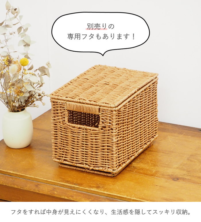 ●天然素材のような風合いがおしゃれなフェイク素材のバスケット「トーク」シリーズ。どんなインテリアにもやさしく溶け込む、ぬくもりのある仕上がりです。