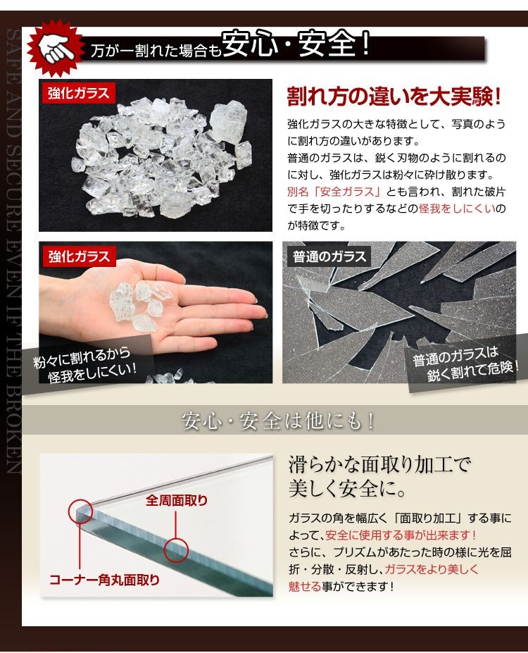 ガラス:強化ガラス(扉・棚)