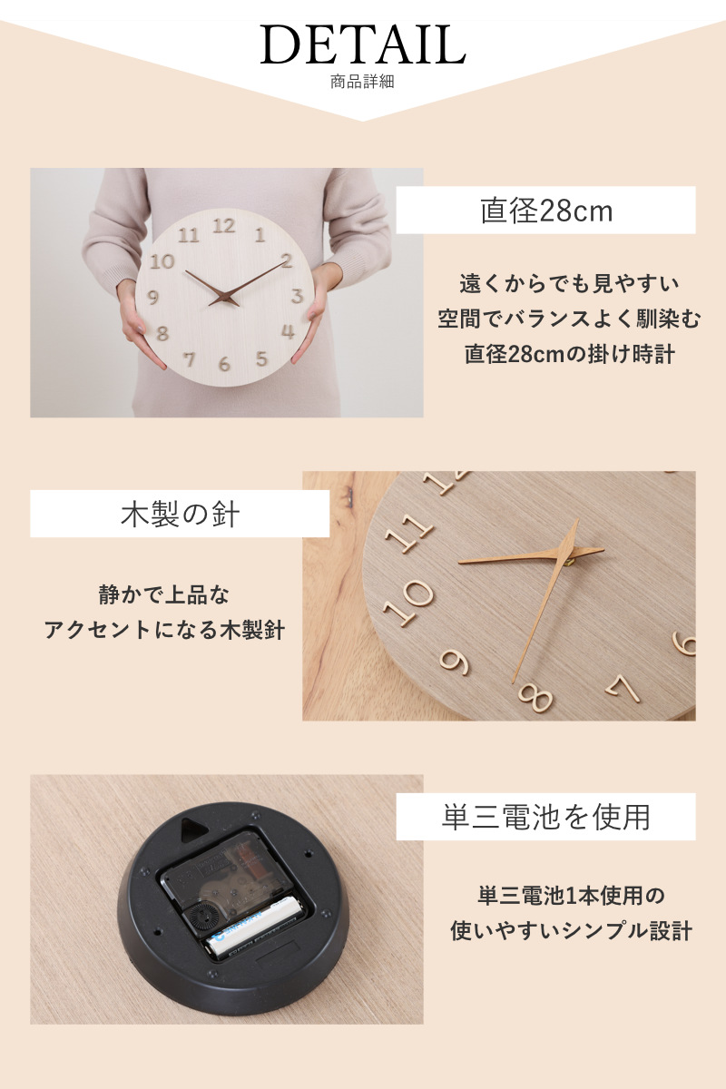●木のぬくもり感じるナチュラルな掛け時計です。