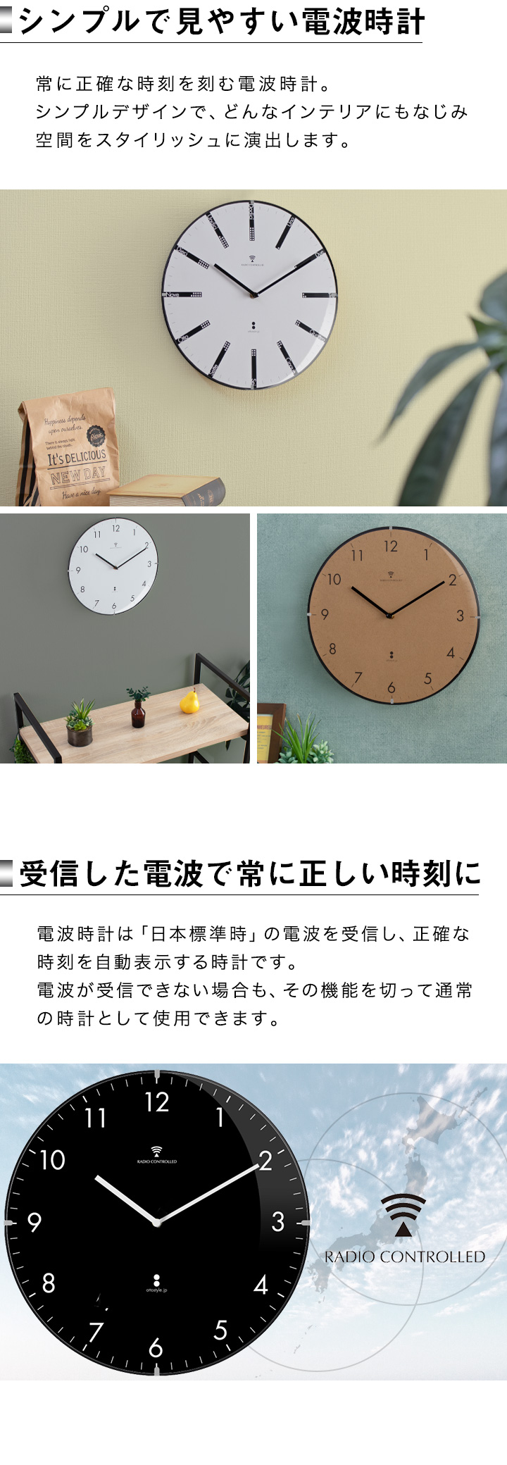 常に正確な時刻を刻んでくれる電波時計シリーズ。 シンプルなデザインの時計はモダンなスタイルなど、どんなインテリアとも相性抜群。