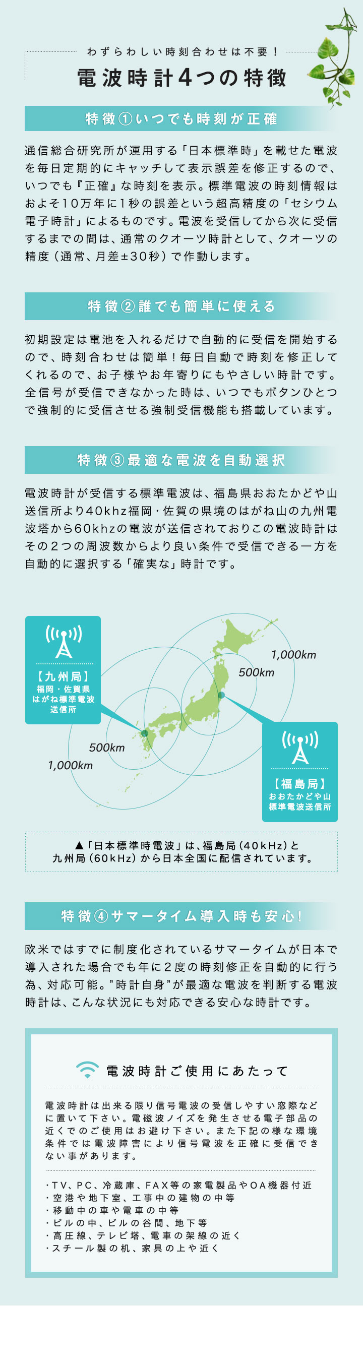 電波時計とは、正確な「日本標準時」の信号電波を受信し、常に正確な現在時刻を