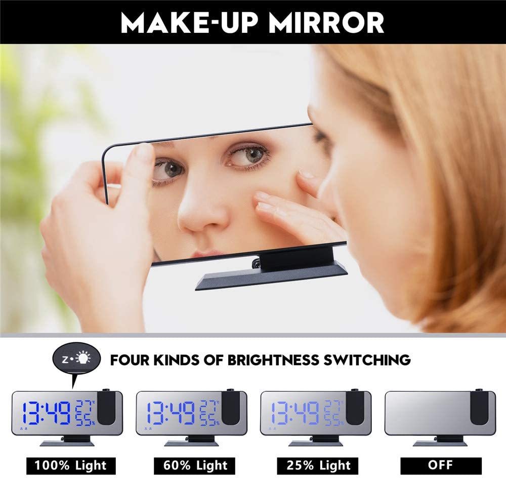 目覚まし時計 プロジェクション アラーム時計 fmラジオ デジタル時計 寝室用 7.3 インチ画面 led クロック usb充電器 4調光 180 ° 回転投影 天井に壁 おしゃれ