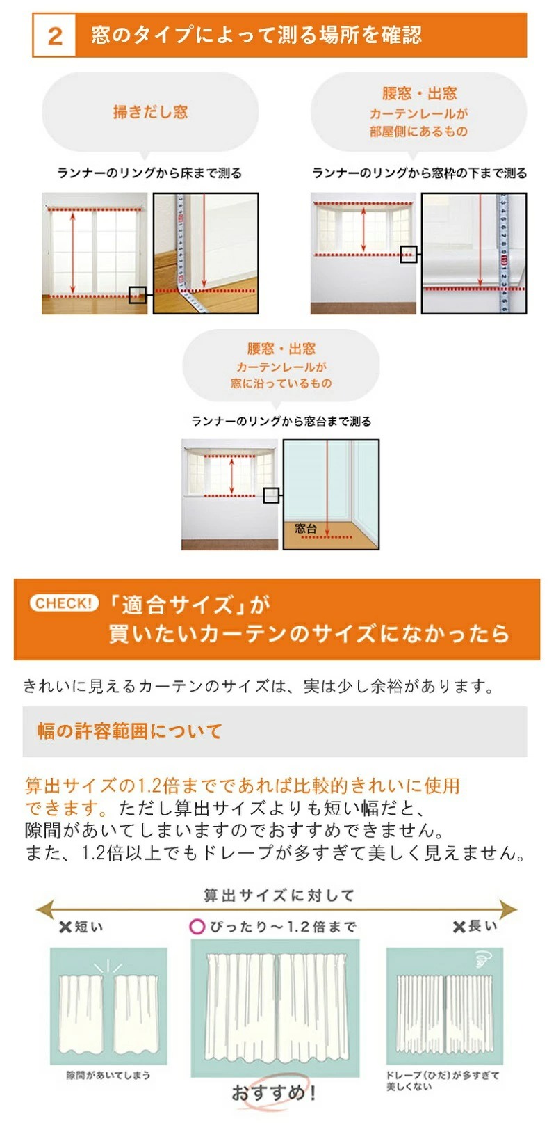 ※セット内容:幅約100、130、150cm=カーテン2枚組(両開き)、幅約200cm=カーテン1枚(片開き)