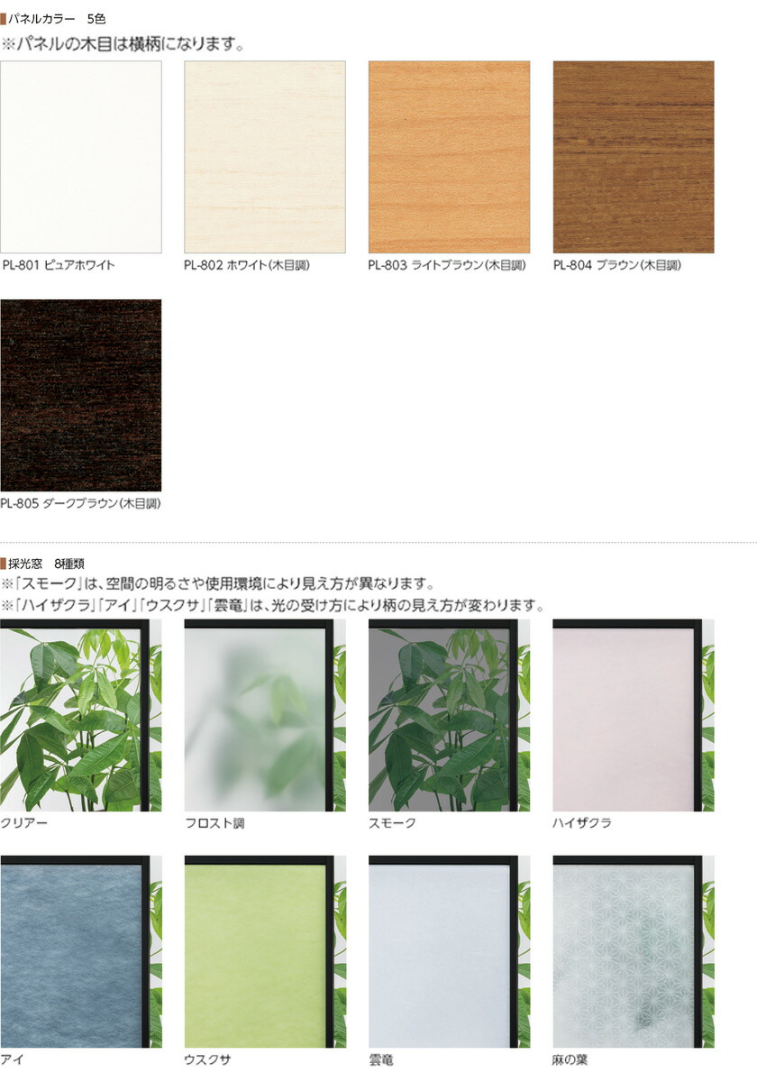 フレームカラー:PL-807 マットブラック 採光窓:フロスト調 パネルカラー:PL-804 ブラウン(木目調)