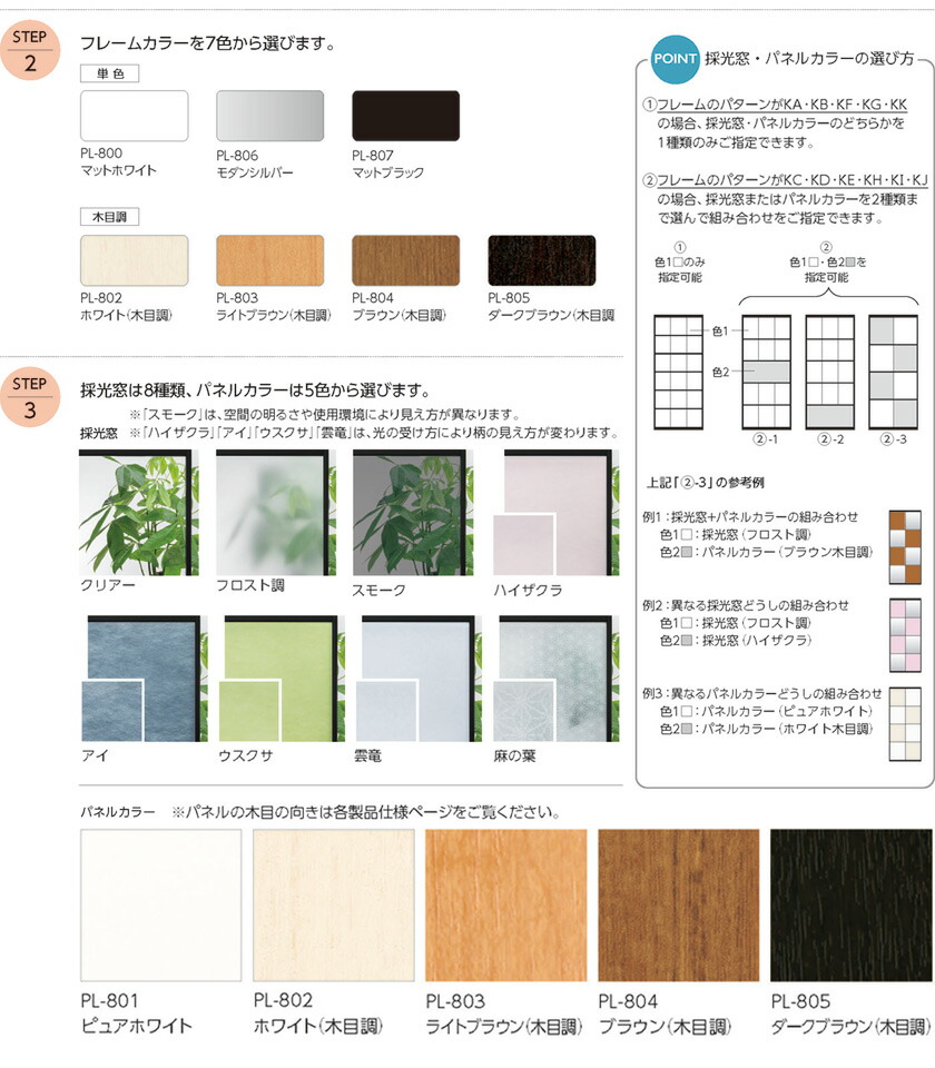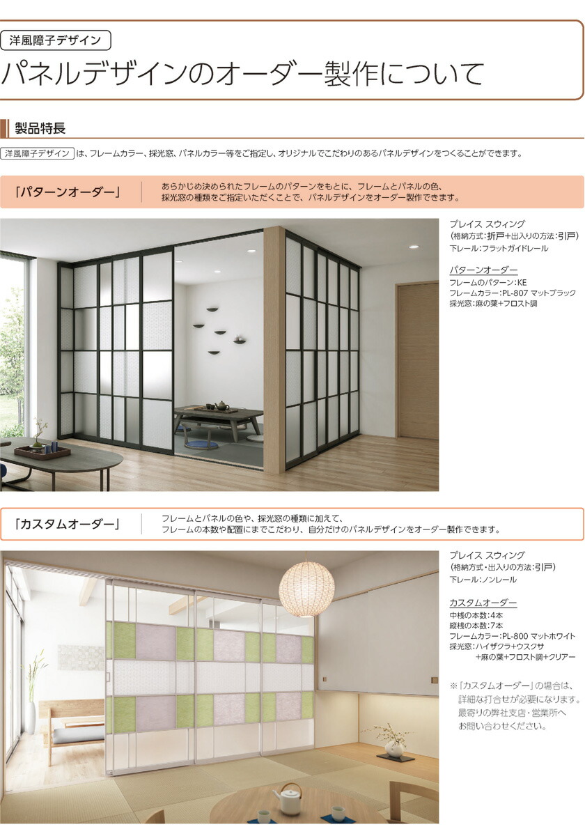 下レール:ノンレール 単色フレーム PL-800・806・807 パネルデザイン:洋風障子デザイン パターンオーダー