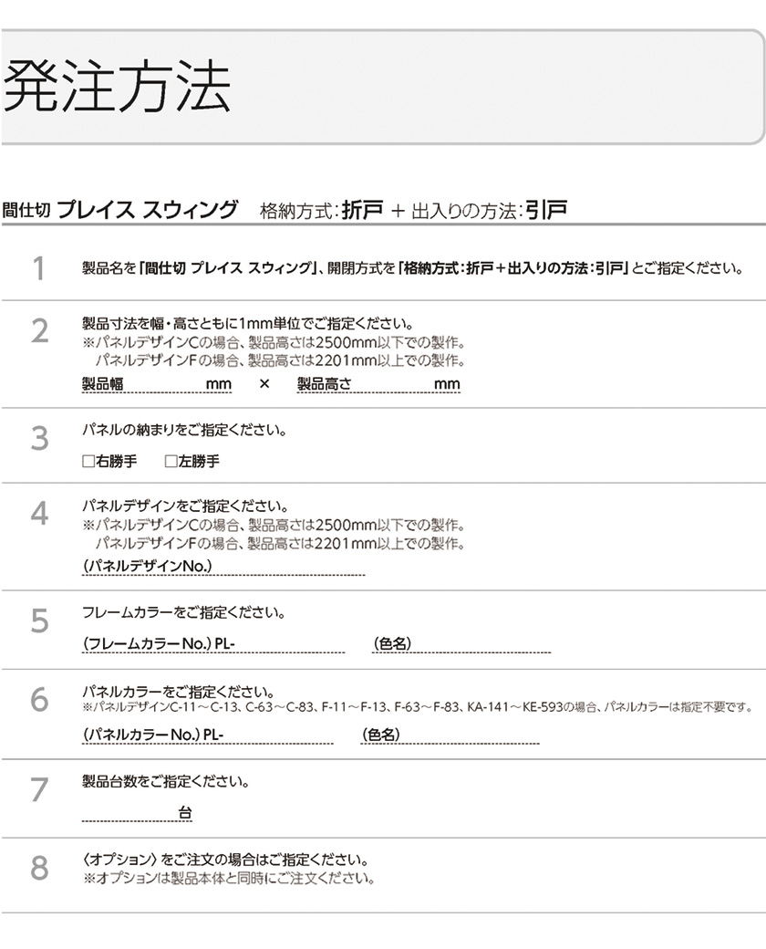 タチカワブラインド▼間仕切 プレイス スウィング 移動収納+開き戸出入り 下レール:ノンレール 単色フレーム PL-800・806・807 パネルデザイン:洋風障子デザイン パターンオーダー▼【製品幅パネル7枚 5617〜6547×製品高さ1901〜2200mm】