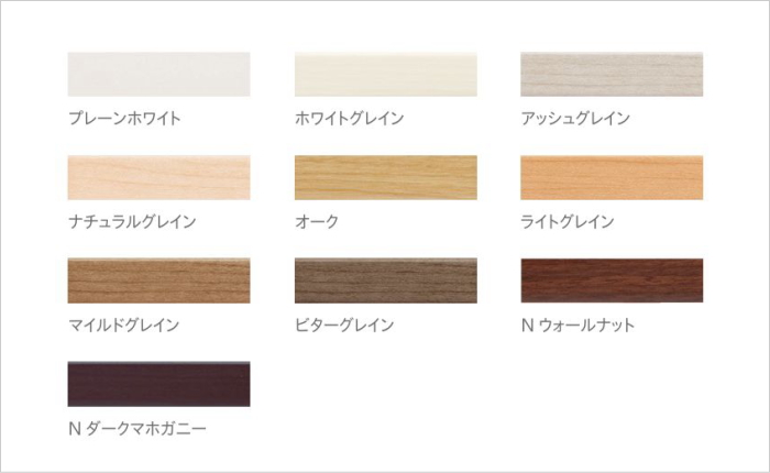 ■カラー:プレーンホワイト・ホワイトグレイン・アッシュグレイン・ナチュラルグレイン・オーク ライトグレイン・マイルドグレイン・ビターグレイン・Nウォールナット・Nダークマホガニー