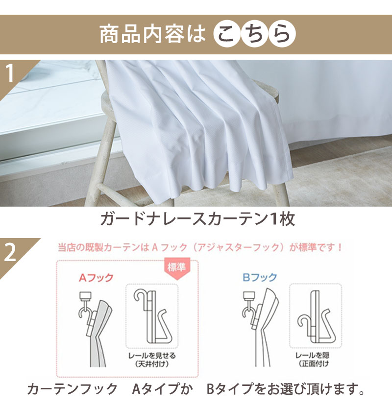 ※厚地カーテンを一緒にご購入の場合、レースカーテンの丈は厚地カーテンより-1〜2cmになるようにサイズ指定してください。