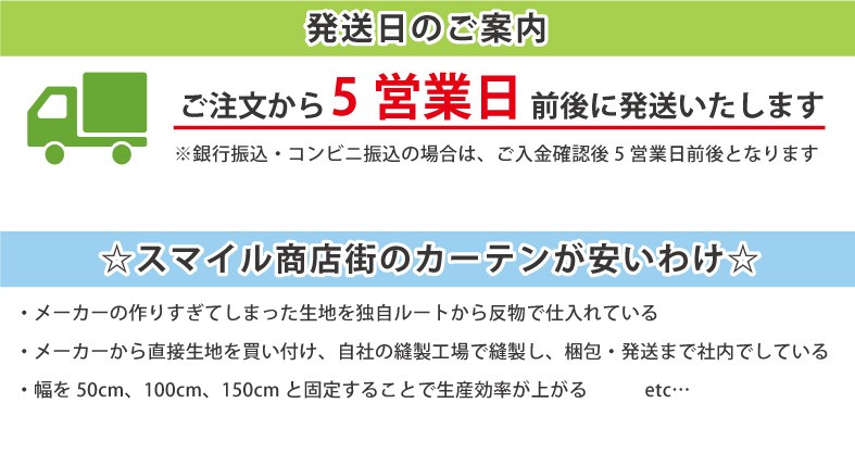 オーダーサイズの場合は、お届けまでに5日〜7日程度かかりますのでご了承下さいませ。