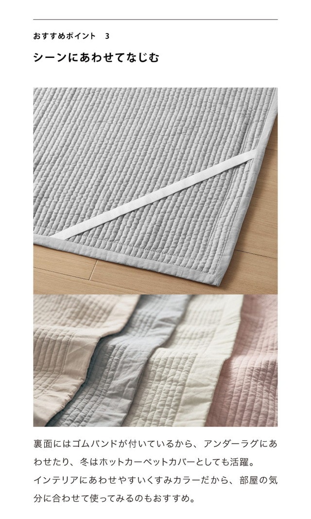 ●ホットカーペットやアンダーラグと合わせて使いやすい四隅バンド付き