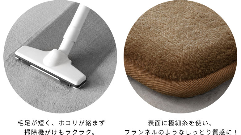 フランネルラグの特長です。いろんな表情をお楽しみください。
