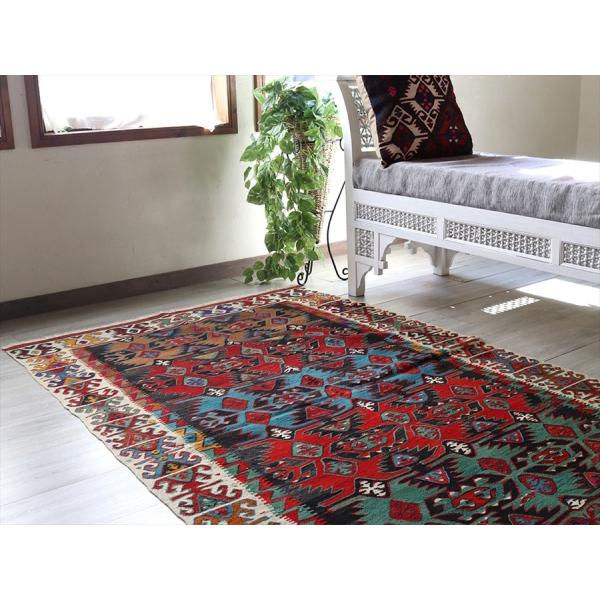 鮮やかな色を残していますが、織られた年代は古く、20世紀初頭のものと推測されます。ほぼ織られた状態のままでコンディションがよい状態なのは、このキリムがモスク(寺院)に寄贈されて、長い間大切に保管されていたためで、近年になってマーケットに出されたものであるためです。