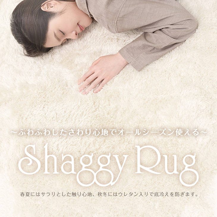 しっとりとなめらかなシャギーは、ずっと触れていたくなる心地よさ。