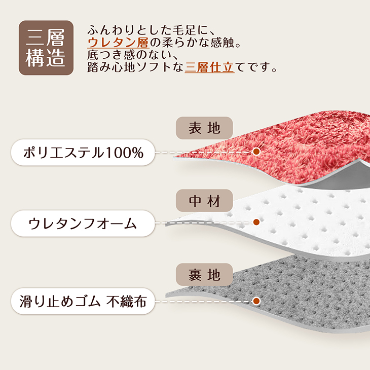 洗濯可能マイクロファイバーシャギーラグマット(スベリ止め)