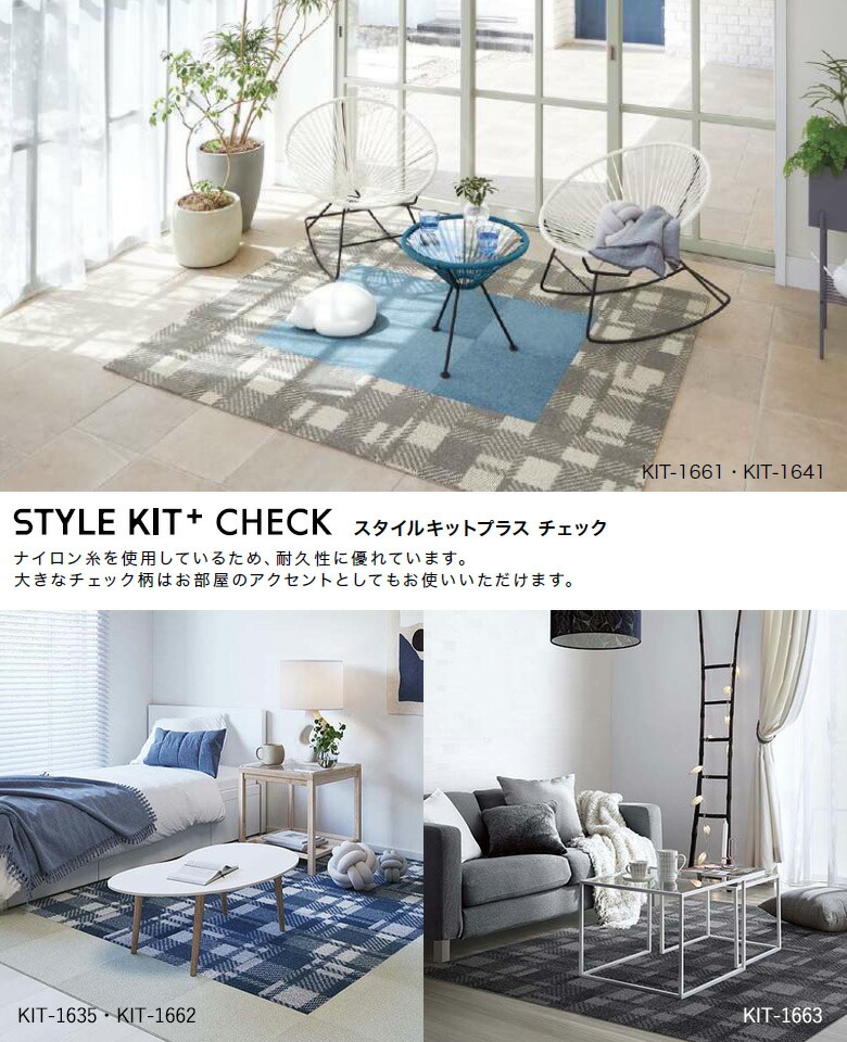 サンゲツ タイルカーペット STYLE KIT+ スタイルキットプラス CHECK チェック KIT-1661 〜 KIT-1663 全3色 40cm×40cm