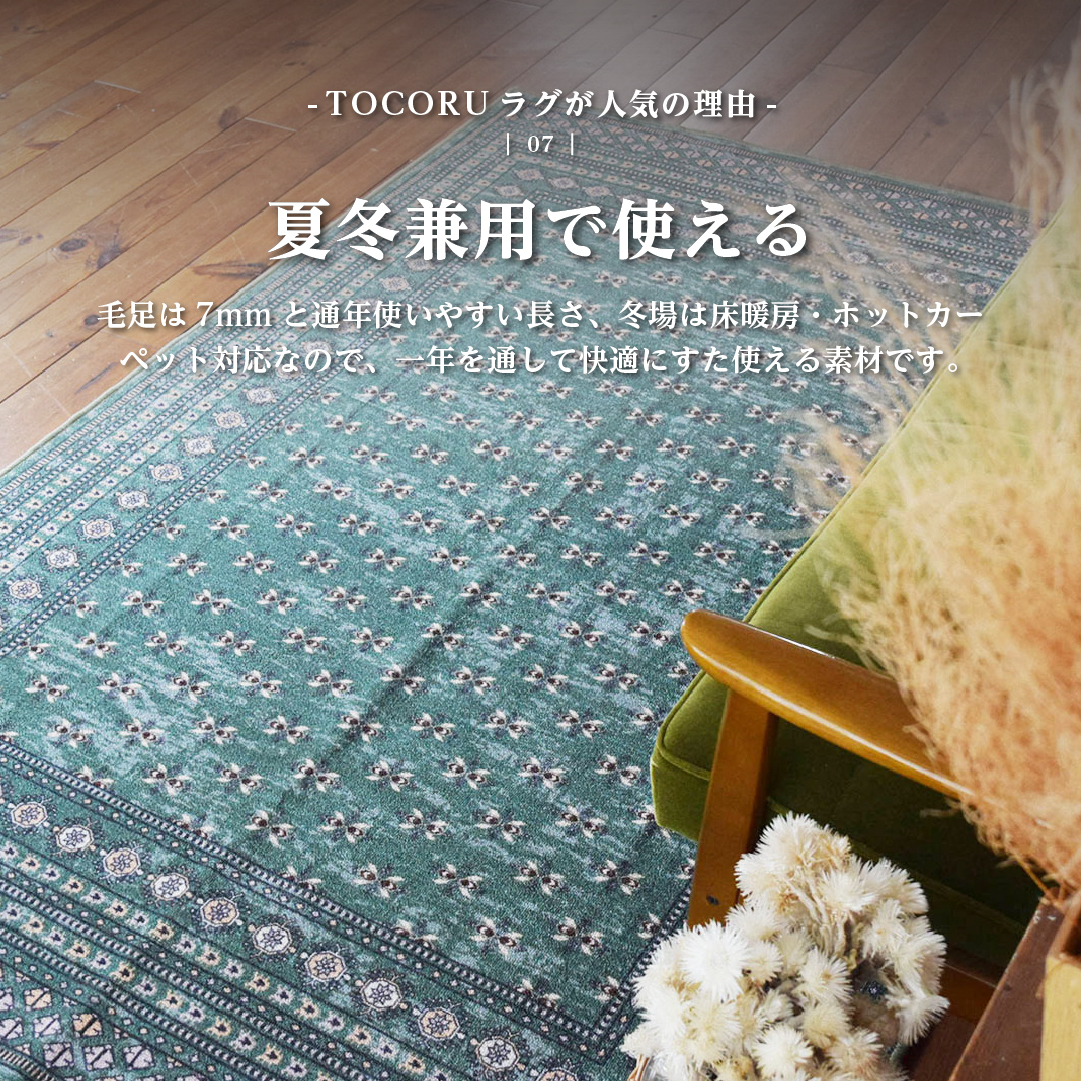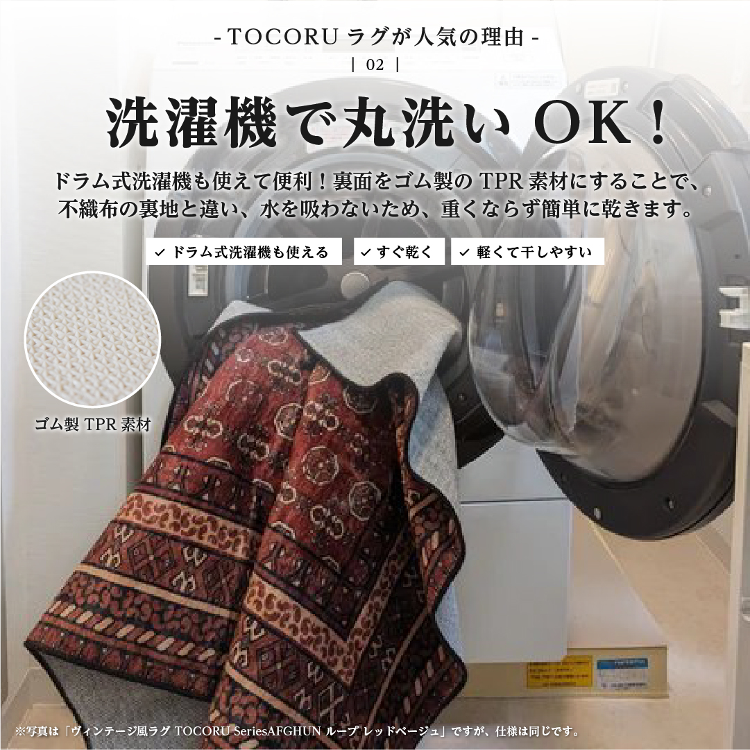 お洒落で洗えるヴィンテージ風ラグマット ブハラ 140×200cm 14色 5サイズ 赤 夏 長方形 1.5帖 レッド 滑り止め オールシーズン TOCO LIFE TOCORU