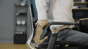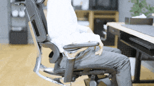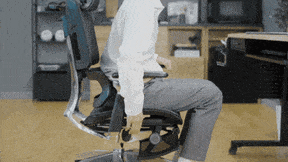 座ったままランバーサポートを前方に4段階、最大2.5cm突き出す事が出来るため、猫背(前傾姿勢)で作業した場合でも、サポート範囲が広く強制的に姿勢を支えようとします。