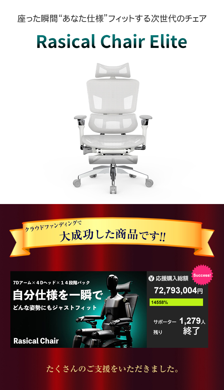 座った瞬間“あなた仕様”フィットする次世代のチェア 「Rasical Chair Elite」