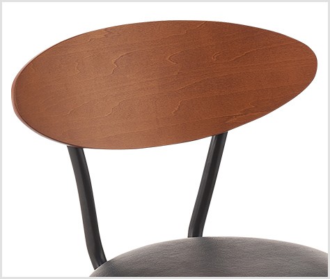 緩やかにカーブした形状が背中にフィットする背もたれは、温かみのある木製で優しい印象に仕上げています。