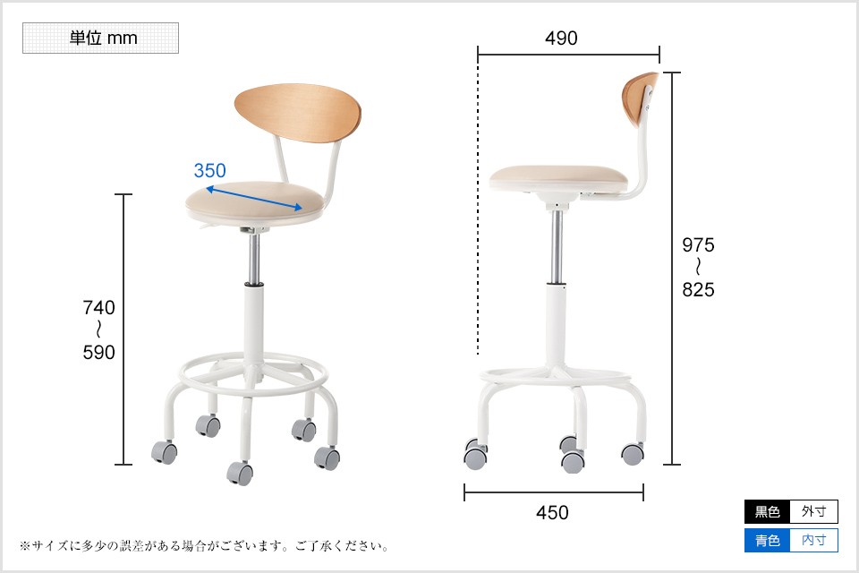 幅450×奥行490×高さ825〜975mm