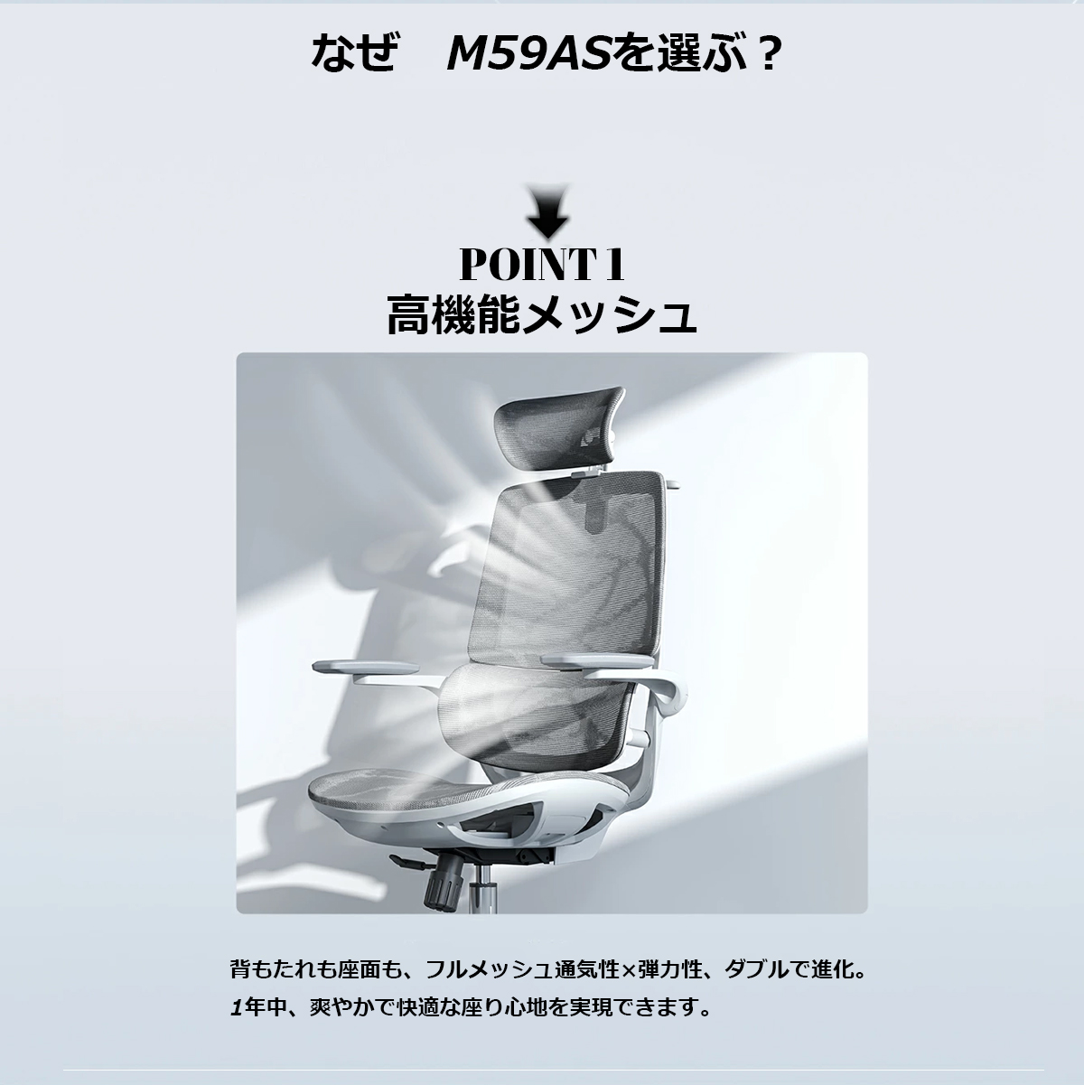 オフィスチェア メッシュ SIHOO M59AS ロッキング ハイバック ヘッドレスト アームレスト 腰痛 人間工学 多機能チェア 会議 ゲーミングチェア ミーティング