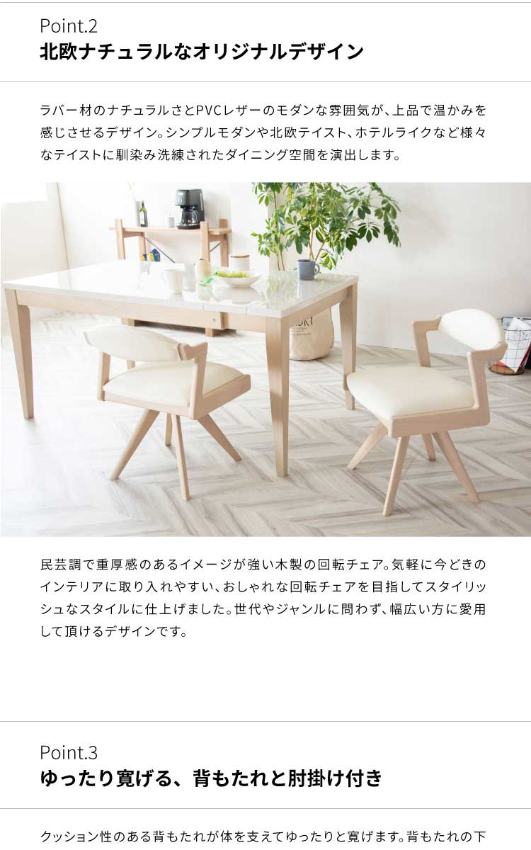 ダイニングチェア 回転 おしゃれ 北欧 回転チェア 一人掛け ダイニング チェア 木製 天然木 合皮 PVCレザー 回転椅子 高齢者 アームチェア