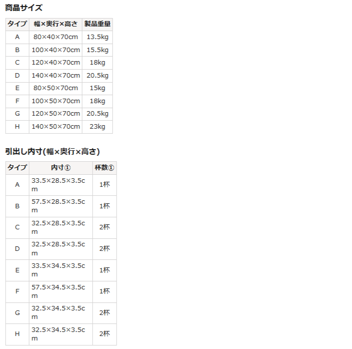 ●すっきりした印象の浅めの引き出し