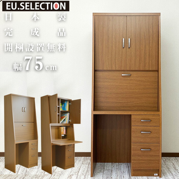 ※引き出しの取っ手の取り付け、デスクと上置きの上下連結作業は、お客様にてお願いします。