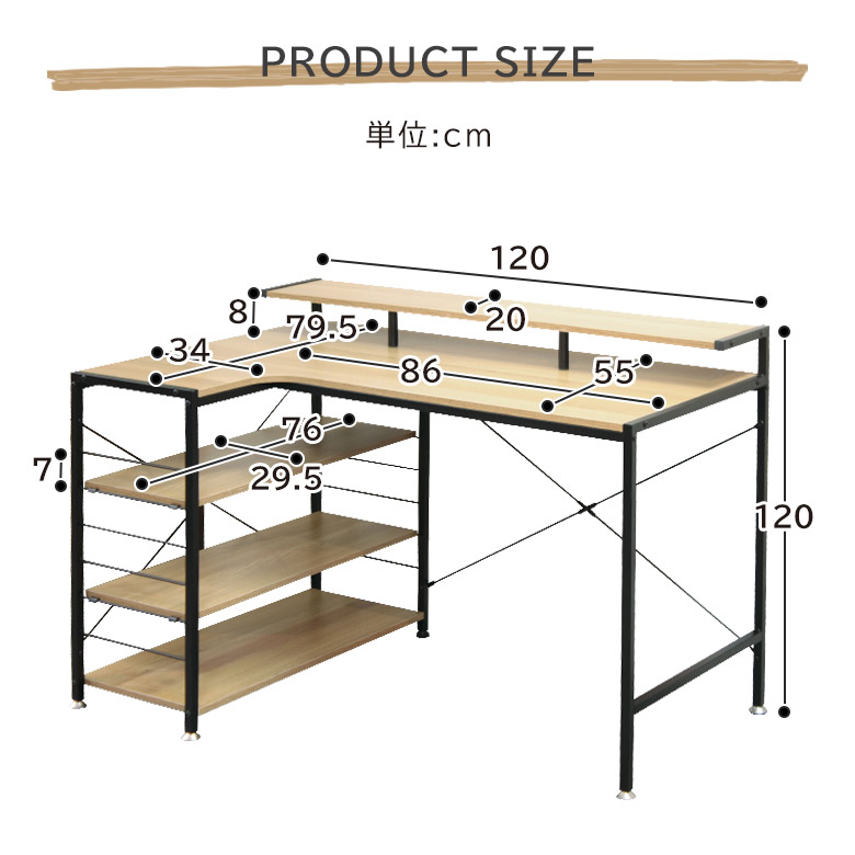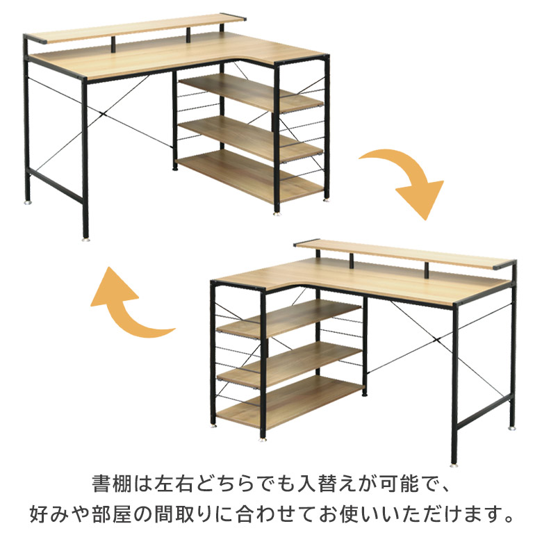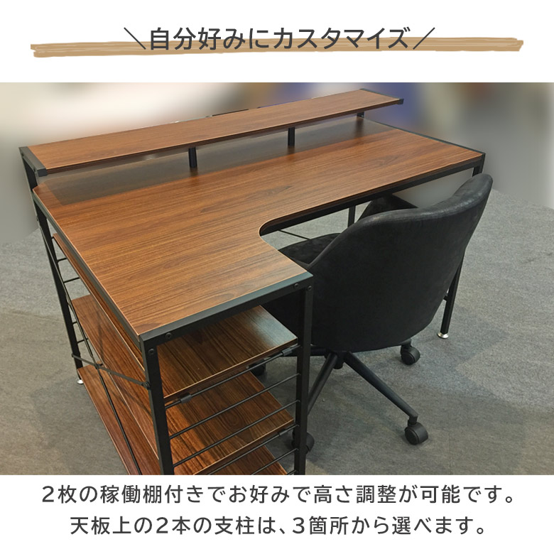 パソコンデスク 120cm L字デスク 棚付き シンプル おしゃれ 収納 コンパクト リモートワーク デスク オフィスデスク リモートデスク