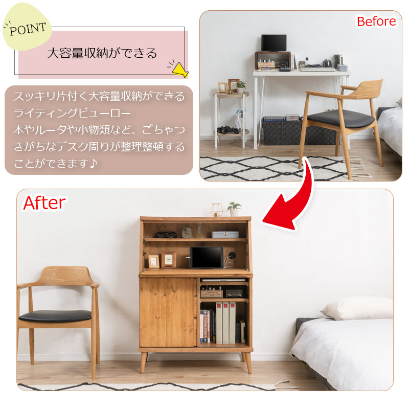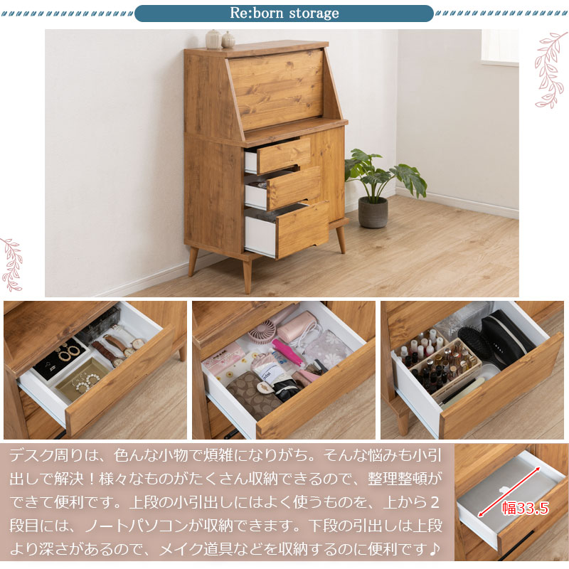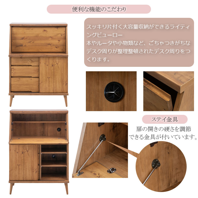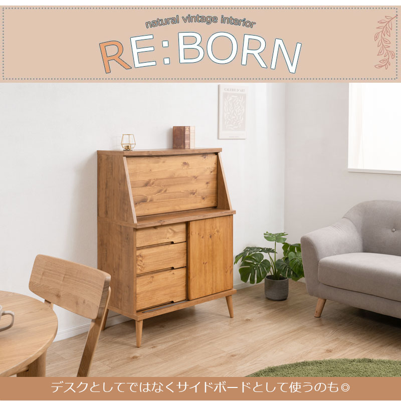 【Re:born】天然木がなす美しさ パイン材 オイル仕上げのライティングビューロー 北欧ナチュラルヴィンテージ 幅81 日本製 完成品