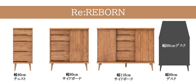 ■商品について/存在感があるのは脚のシャープ感が絶妙なバランス。軽やかな印象の小ぶり感はいろいろなタイプと組み合わせてお洒落な雑貨が映える空間を演出。 この「バランス」がどこか新しさを感じる、ずっと眺めていたいそんな気持ちにさせてくれる『Re:born』。デスク面を閉じれば、リビングボードとしても大活躍!