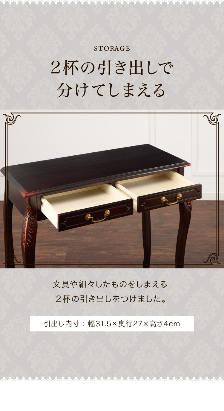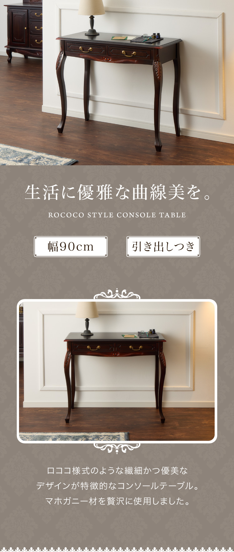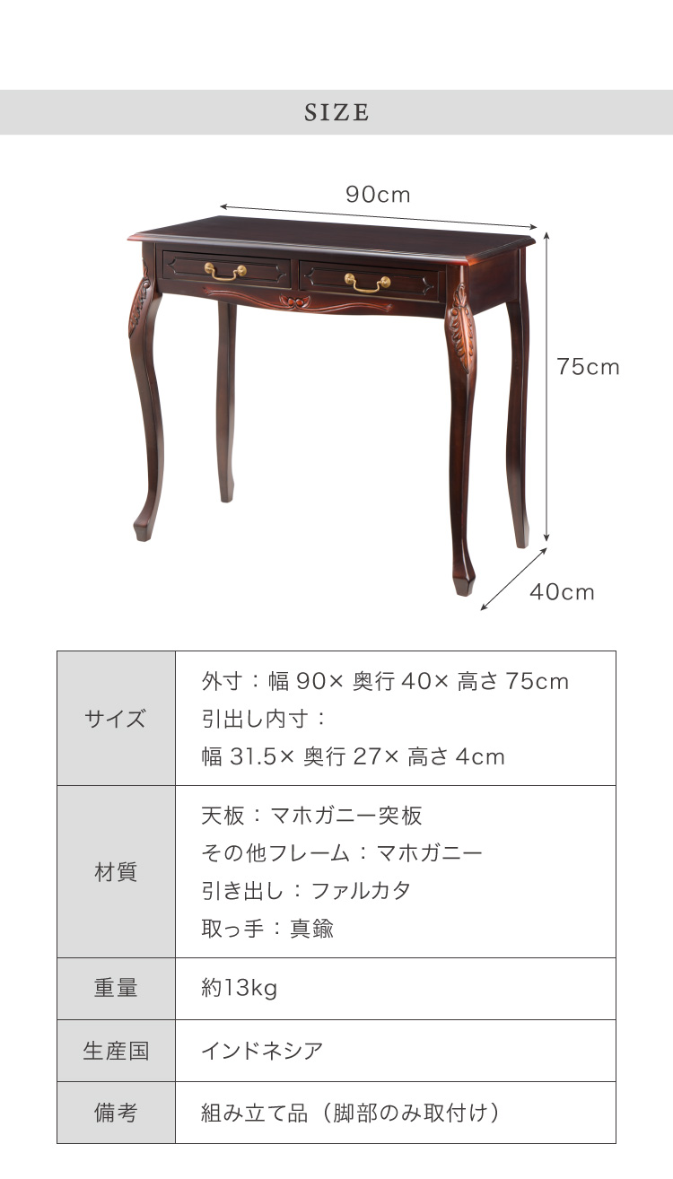 コンソールテーブル 幅90cm マホガ二ー材 完成品 ブラウン 高級感 エレガント ブラウン パソコンデスク 机 テーブル おしゃれ 北欧 インテリア 代引不可