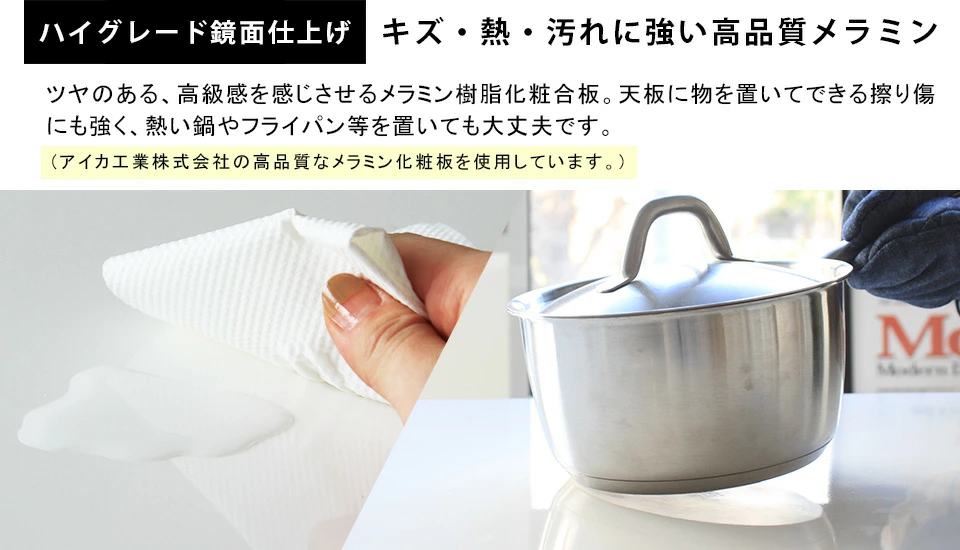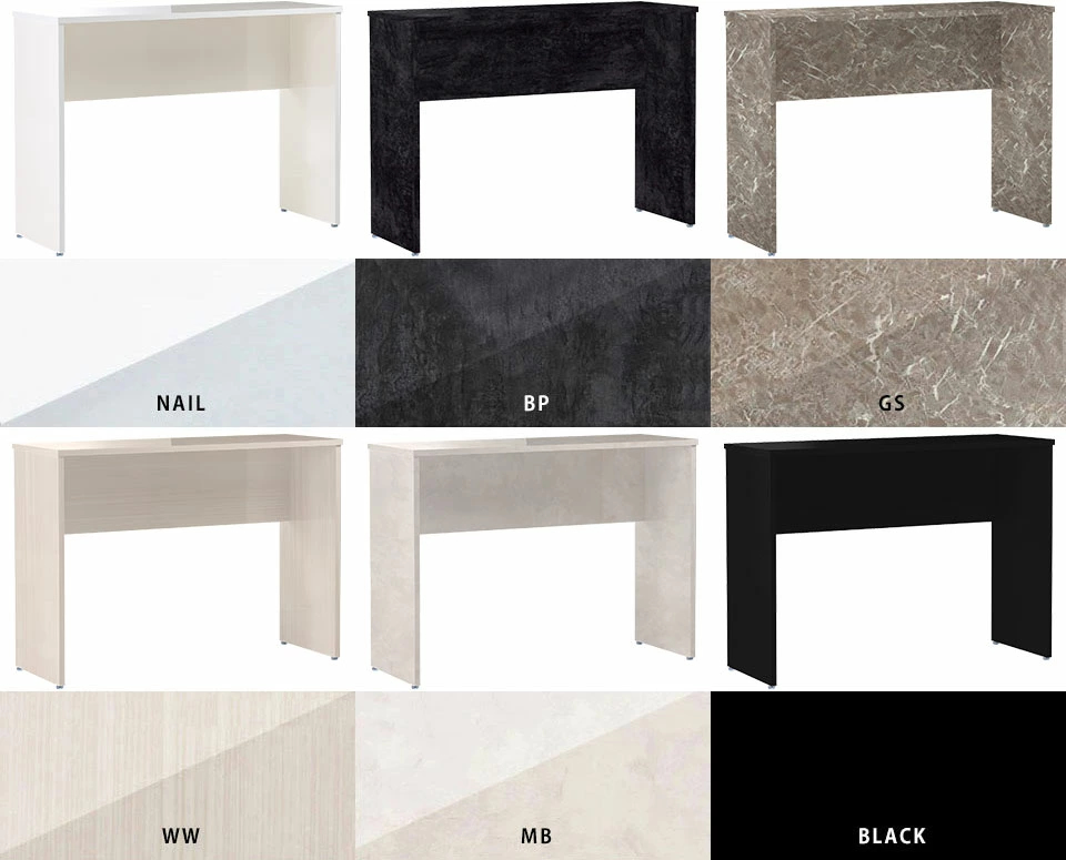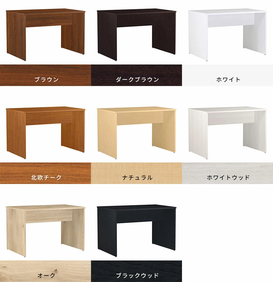リーズナブル木目:[天板]デルナチュレ化粧合板(ブラウン・ダークブラウン・北欧チーク)、強化紙化粧合板(ナチュラル・ホワイトウッド・オーク・ブラックウッド)、ポリエステル化粧合板(ホワイト)/[裏側・脚]プリント化粧合板