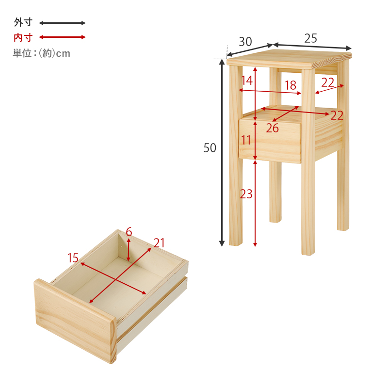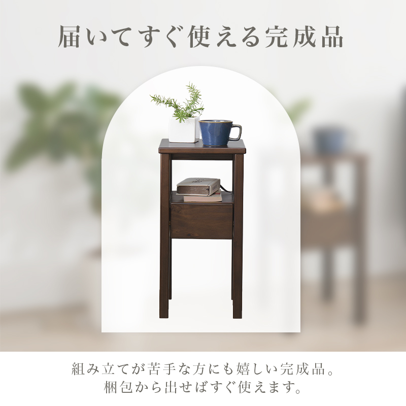 サイドテーブル スリム ナイトテーブル 引き出し ベッドサイドテーブル ミニテーブル おしゃれ テーブル 完成品 木製 机 可愛い 天然木 木製 幅25