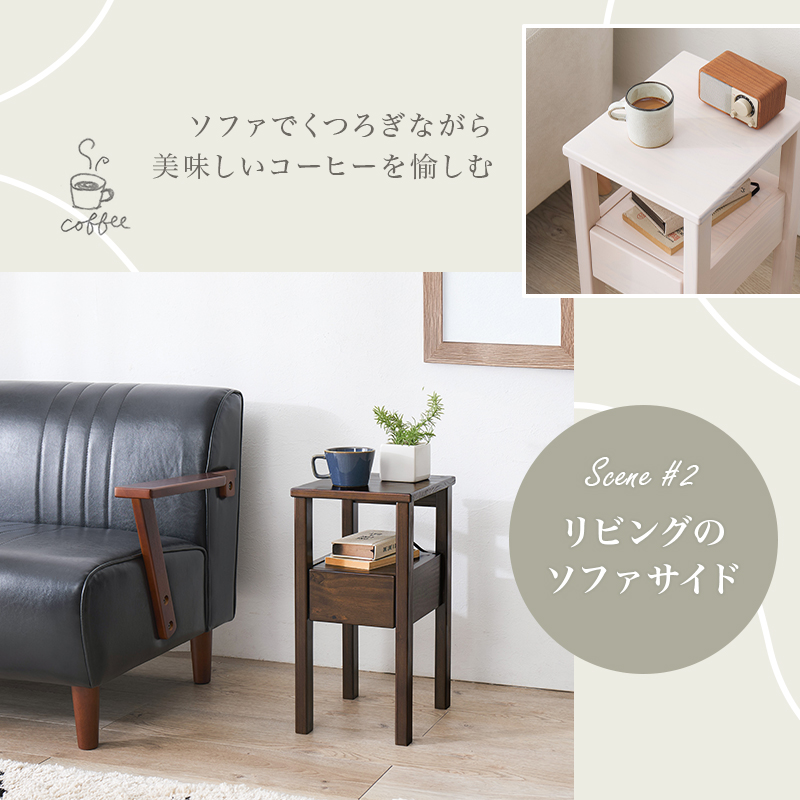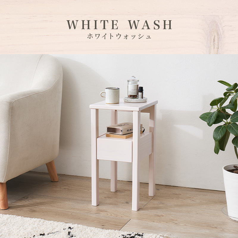 天然木パイン材を使用した、木の温かみに溢れるサイドテーブル。
