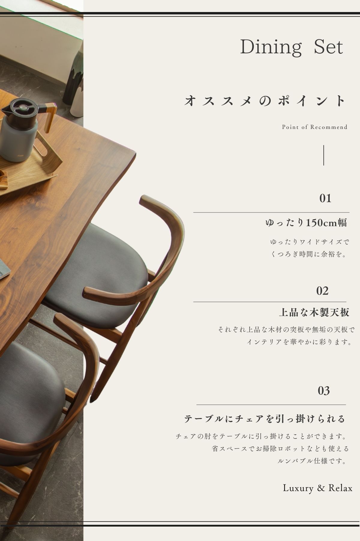 そのどちらも大切にしたい方のために生まれた、和風モダンダイニングセットです。