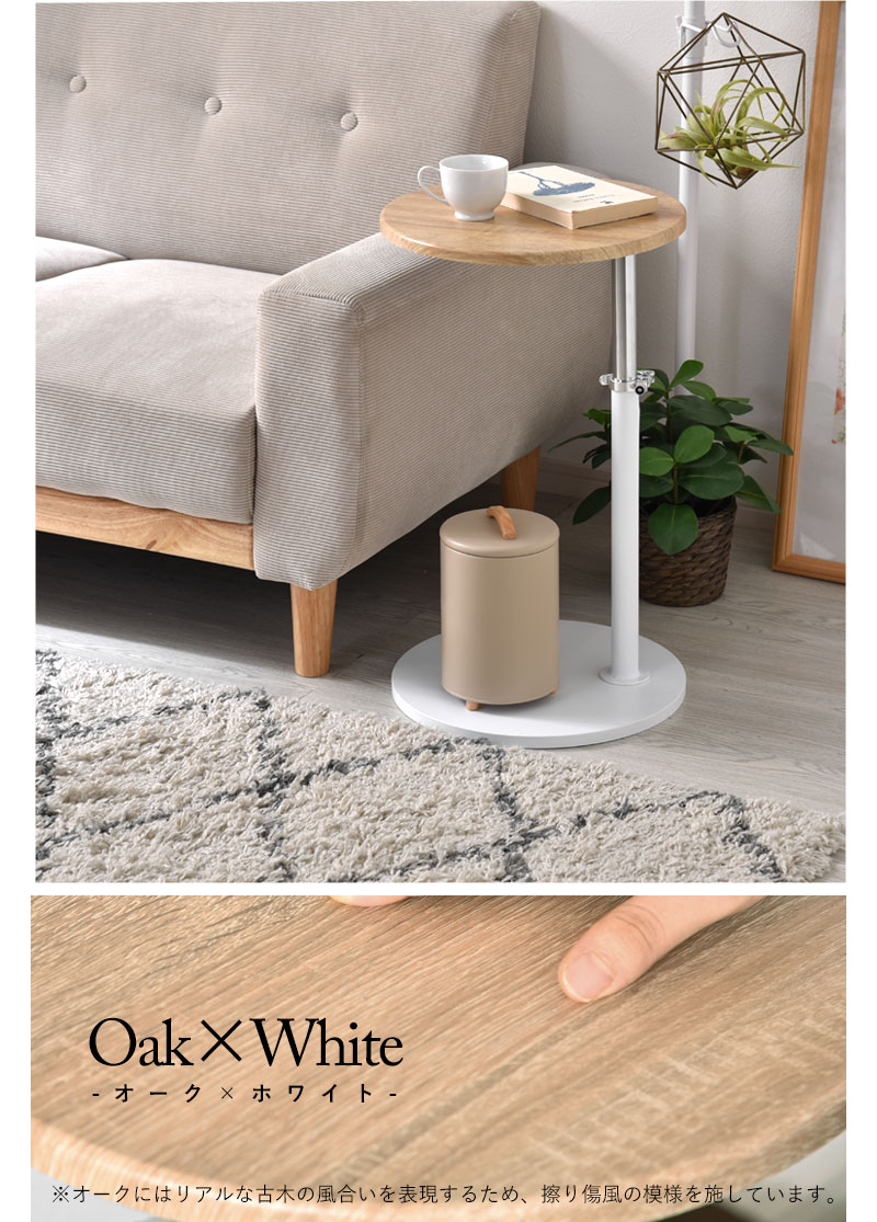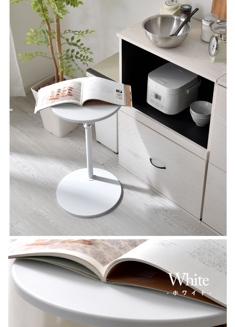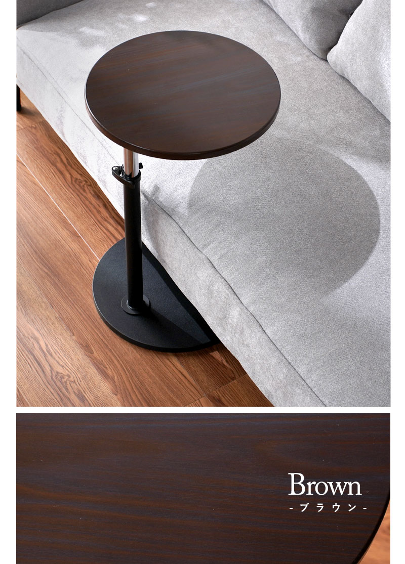 サイドテーブル 昇降式 丸型 幅35cm 高さ42〜63cm ラウンディ