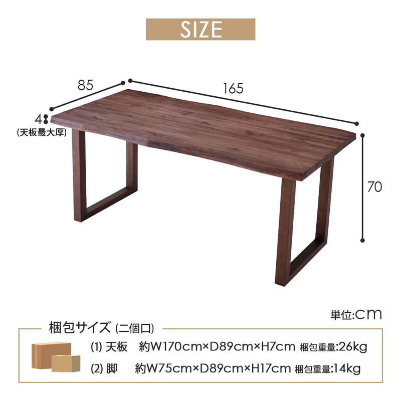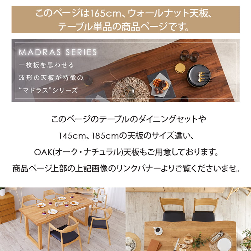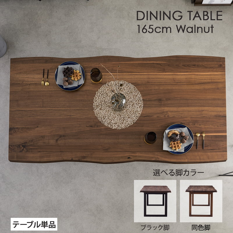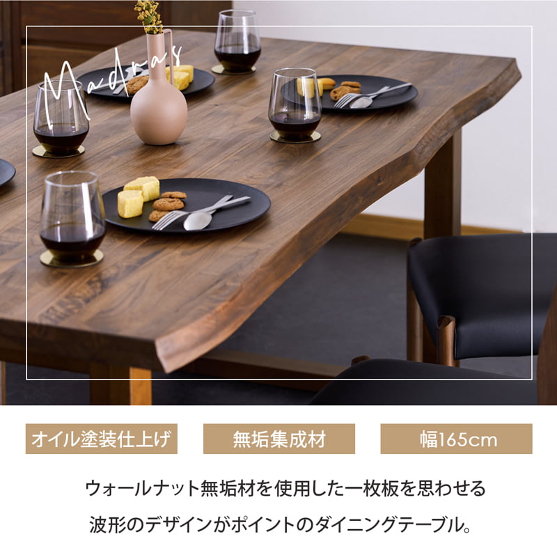 ダイニングテーブル 165cm 単品 4人 5人 食卓 おしゃれ 北欧 モダン シンプル 一枚板風 無垢材 木製 ウォールナット ブラウン 黒脚 マドラス