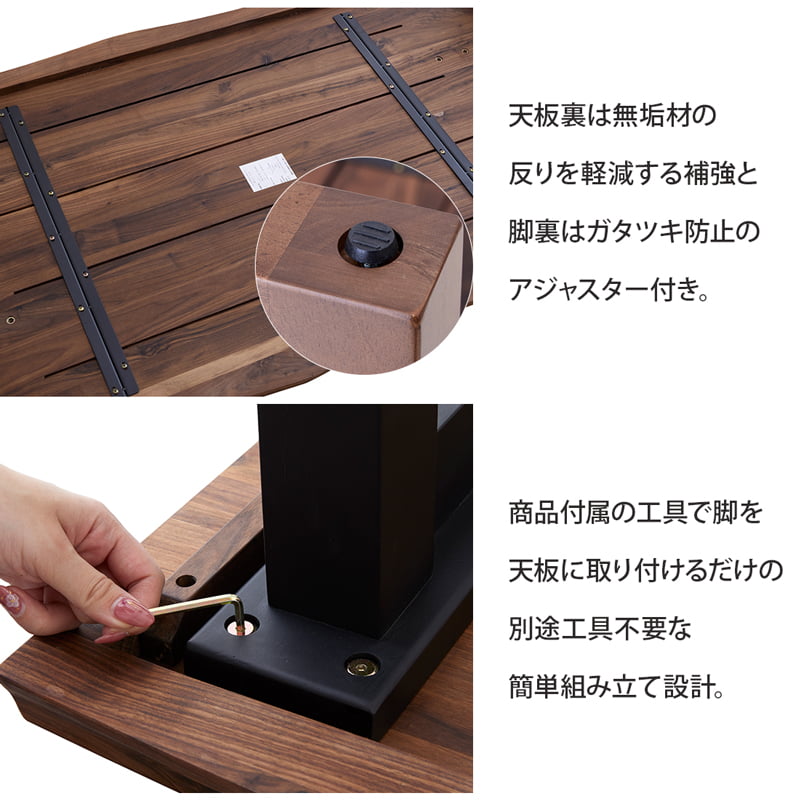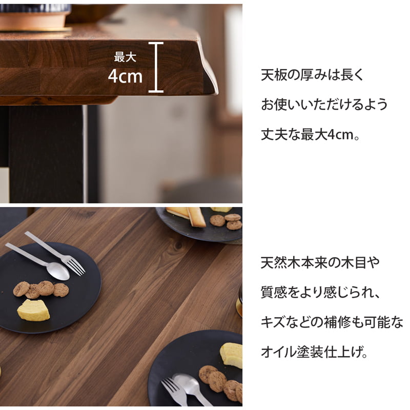 ・ウォールナット無垢集成材を使用した天板は