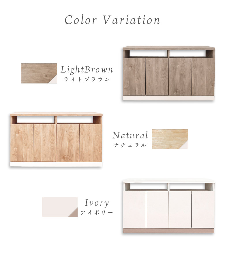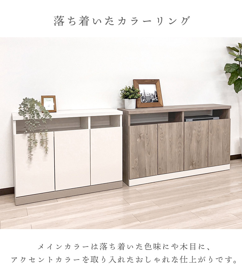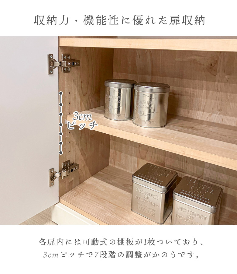 扉内には棚板が1枚ずつ付いており収納物に合わせて高さを調整可能。