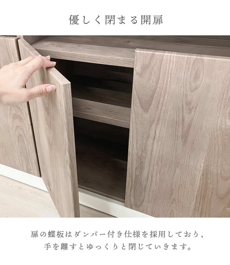 扉の蝶板はダンパー付き仕様を採用、ゆっくりと閉じていきます。