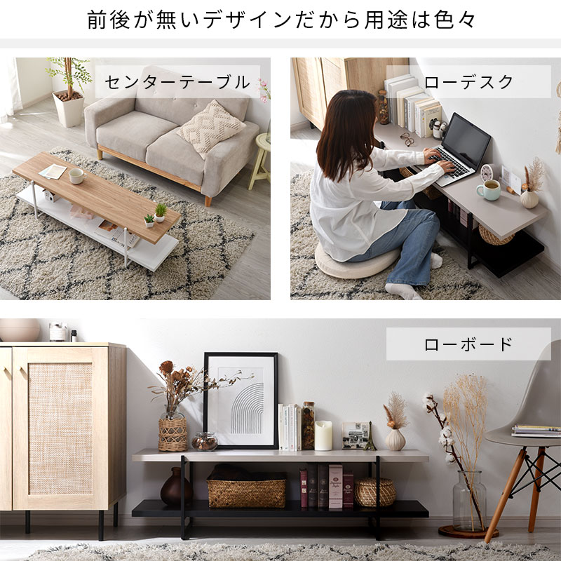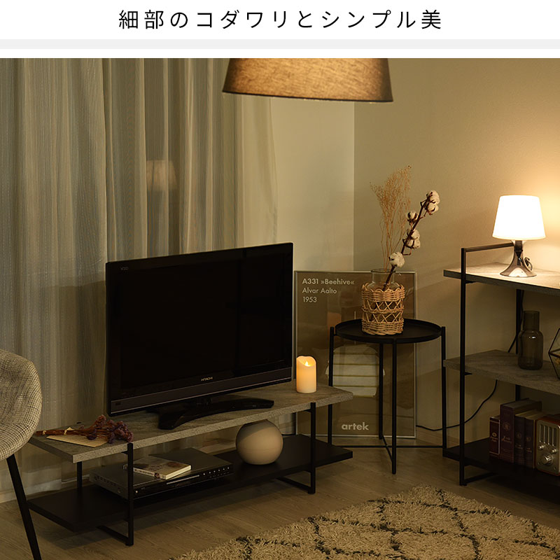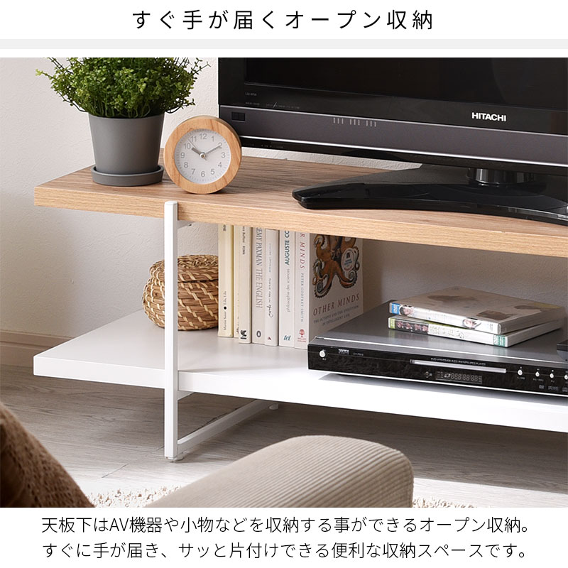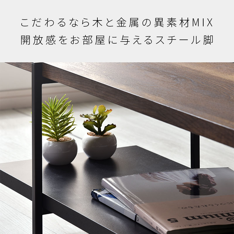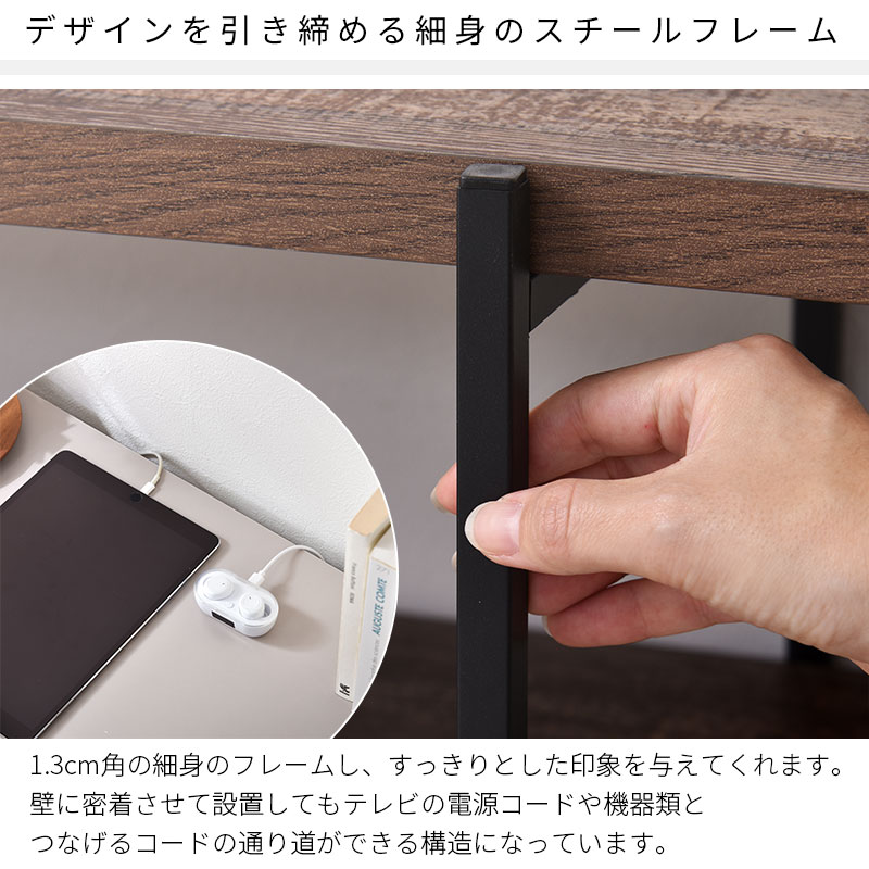 木の質感を感じさせる木目調の天板に黒いスチールのフレームを組み合わせた西海岸やブルックリンスタイルに最適なテレビボードになります。