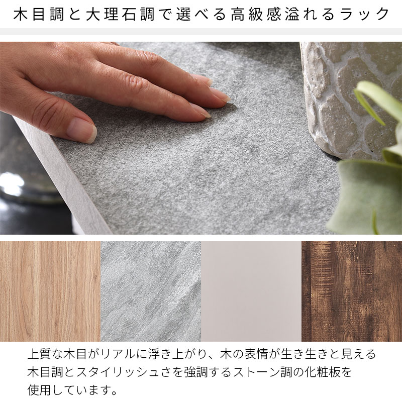 上質な木目がリアルに浮き上がり、木の表情が生き生きと見える木目調とスタイリッシュさを強調するストーン調の化粧板を使用しています。