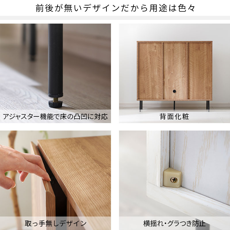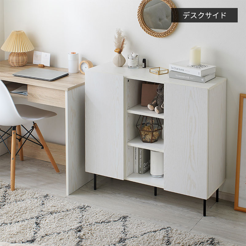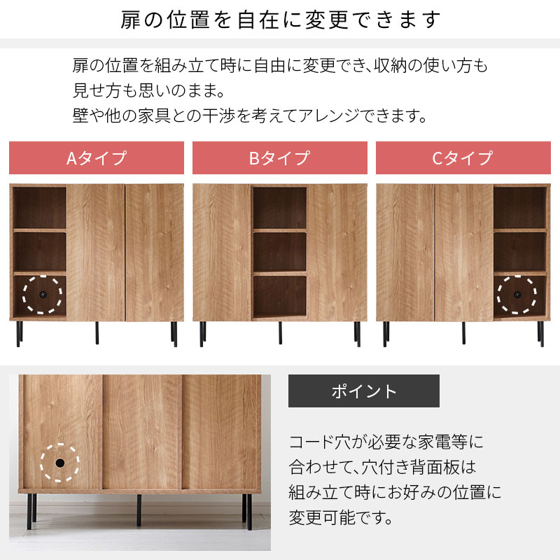 扉の位置を組み立て時に自由に変更でき、収納の使い方も見せ方も思いのまま。