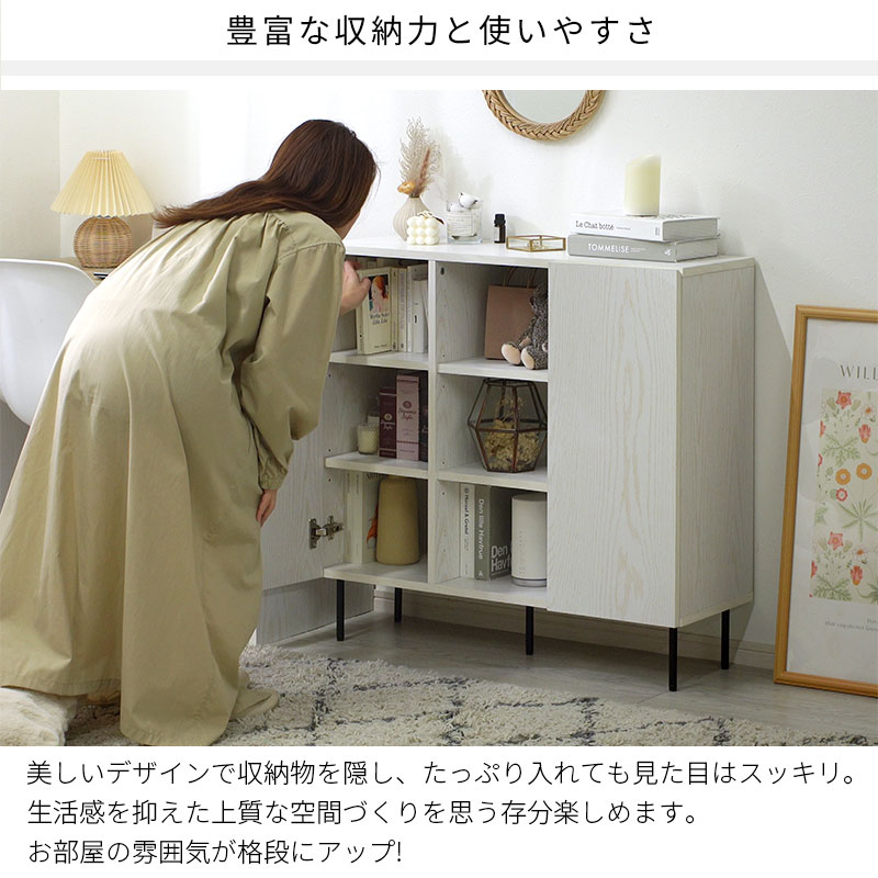 キャビネット 幅90cm 90幅 北欧 木製 おしゃれ スリム 脚付き サイドボード 本棚 食器棚 シンプル 扉付き 薄型 スチール リビング収納 テレビ台 ハイタイプ 棚 両開き キッチン リビング 収納 収納棚 脚 付き 大型 デスクサイド ホワイト 木目調 白 一人暮らし インテリア