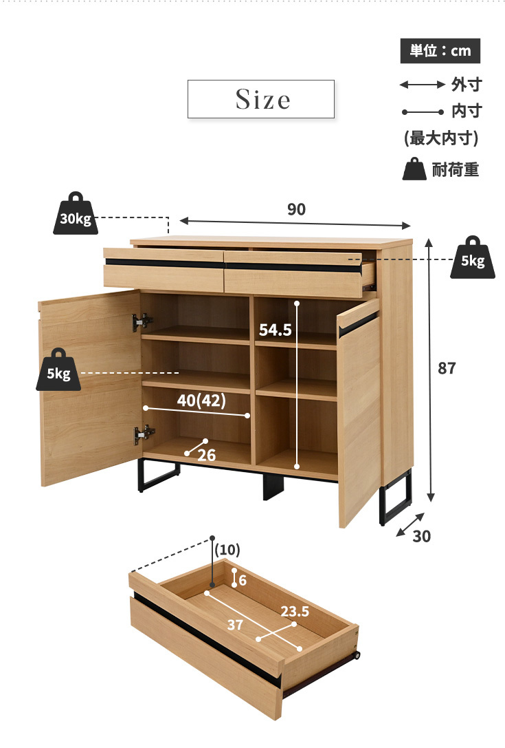 ◆本体外寸:幅約90×奥行約30×高さ約87cm