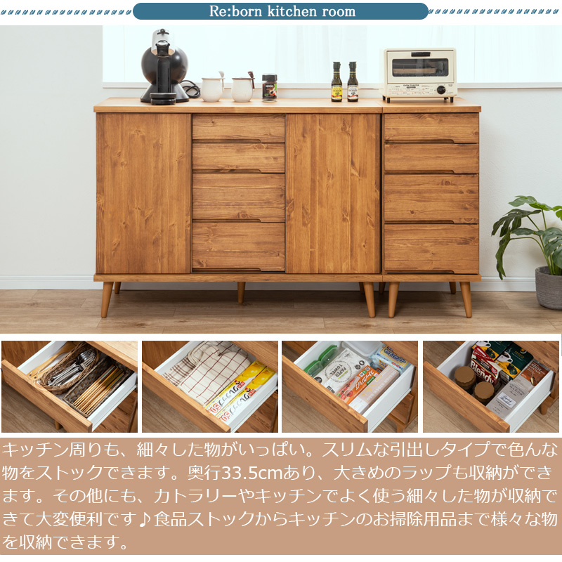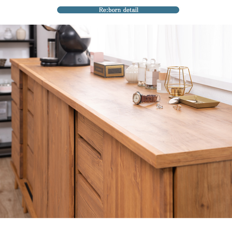 Re:born天然木がなす美しさ パイン材 オイル仕上げのサイドボード 北欧ナチュラルヴィンテージ 幅118 日本製 完成品 大川家具 オイル塗装 キャビネット