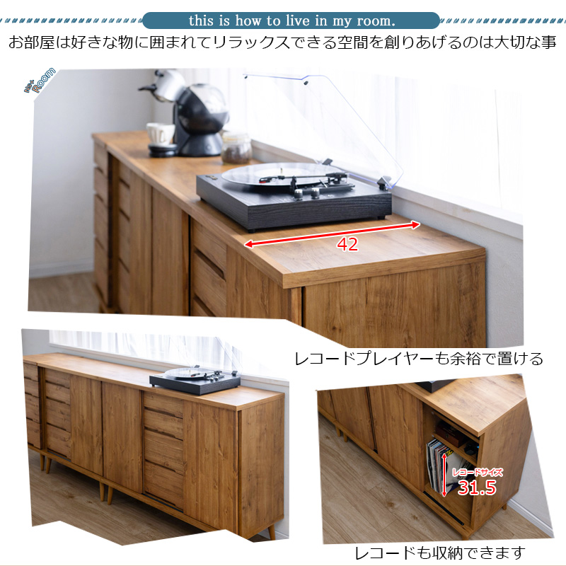 ■商品について/存在感があるのは脚のシャープ感が絶妙なバランス。軽やかな印象の小ぶり感はいろいろなタイプと組み合わせてお洒落な雑貨が映える空間を演出。 この「バランス」がどこか新しさを感じる、ずっと眺めていたいそんな気持ちにさせてくれる『Re:REBORN』。引き戸のキャビネットはリビングボードとしてリビングのあらゆるものをしまっておくのに大活躍。取っ手のない引き戸式ですっきりとデザイン性もアップ。