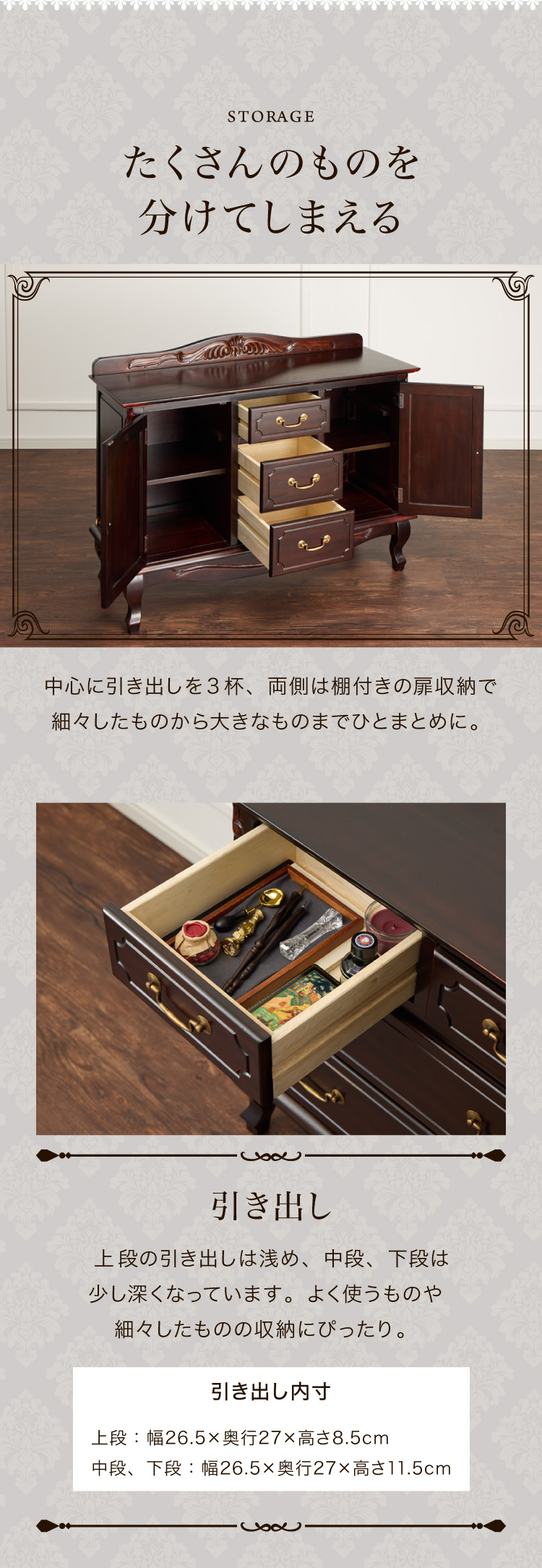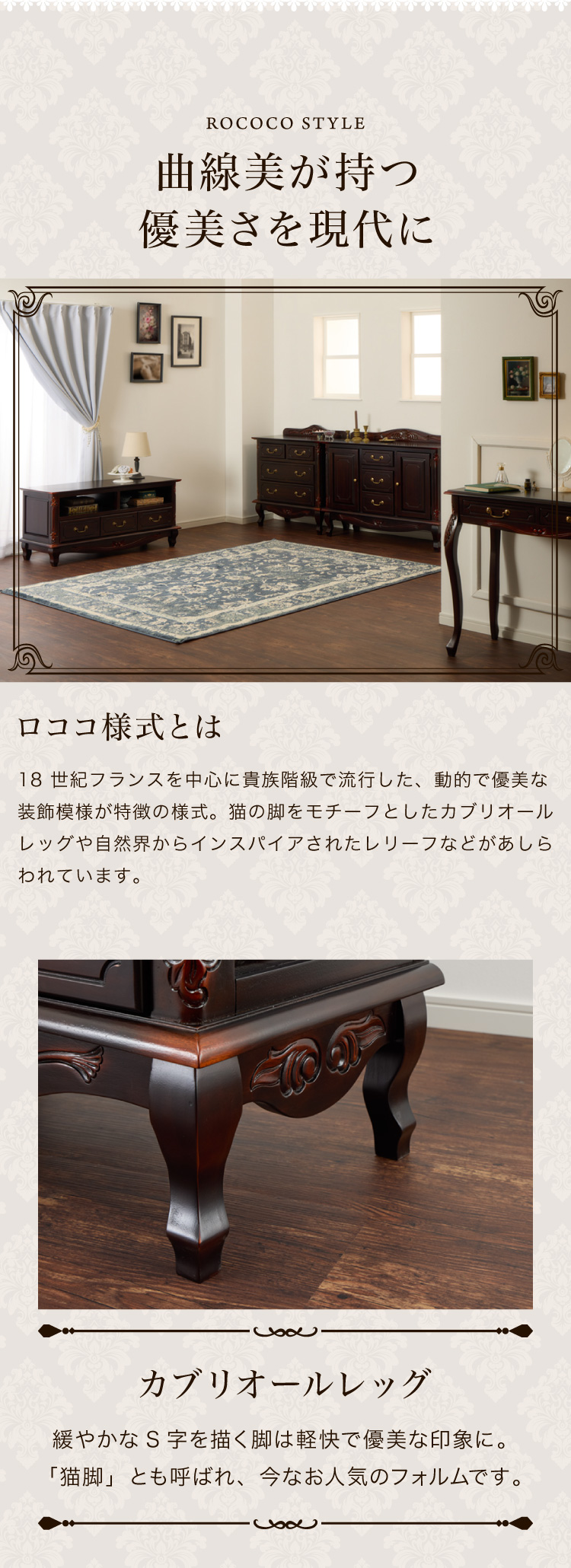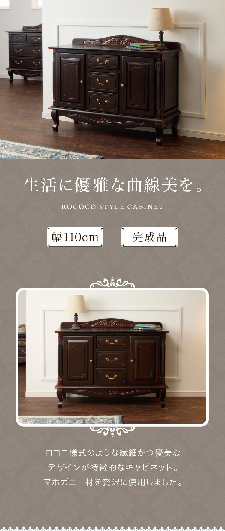ロココ調収納家具 ブラウン